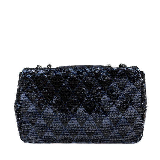 Chanel Black/Navy Sequin Classic Flap Bag w/ Silver Hardware