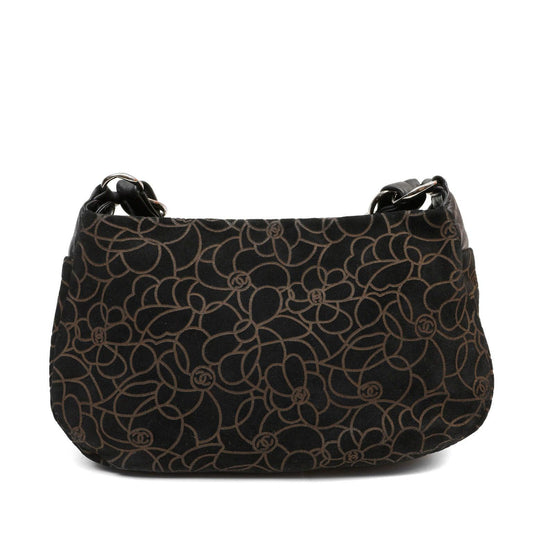 Chanel BlackxBrown Suede Shoulder Bag w/ Gold Camellias & Silver Hardware