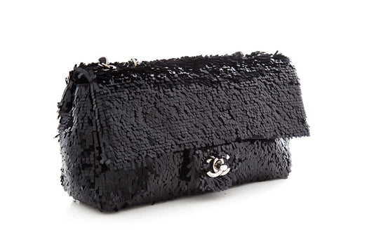 Chanel Black Sequin 2013/14 Single Flap Handbag