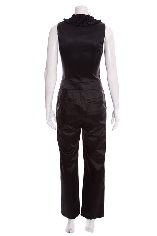 Chanel Black Satin Sleeveless Ruffle Jumpsuit SZ 38