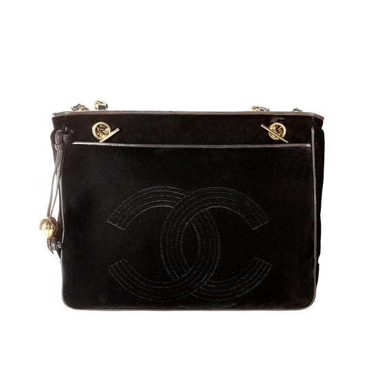 Chanel Black Velvet CC Vintage Tote