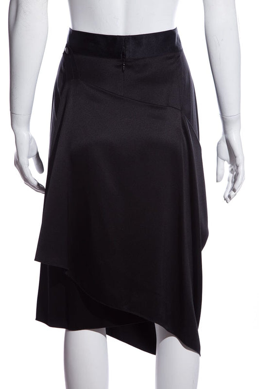 Chanel Black Silk Drapped Wrap Skirt SZ 46