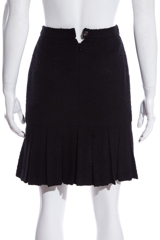 Chanel Black Tweed Pleated Bottom Skirt SZ 34