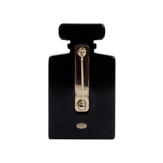 Chanel Black Resin Faux Pearl CC Perfume Bottle Pin Brooch