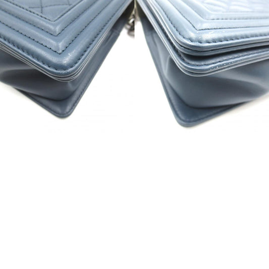 Chanel Boy Chain Shoulder Bag Leather Blue