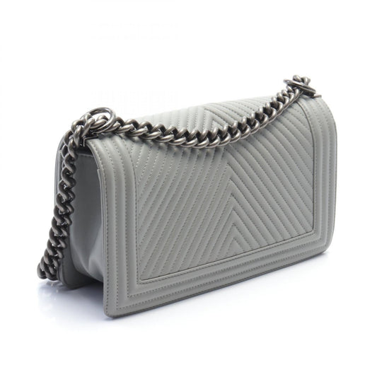 Chanel Boy Chevron Leather Shoulder Bag Gray