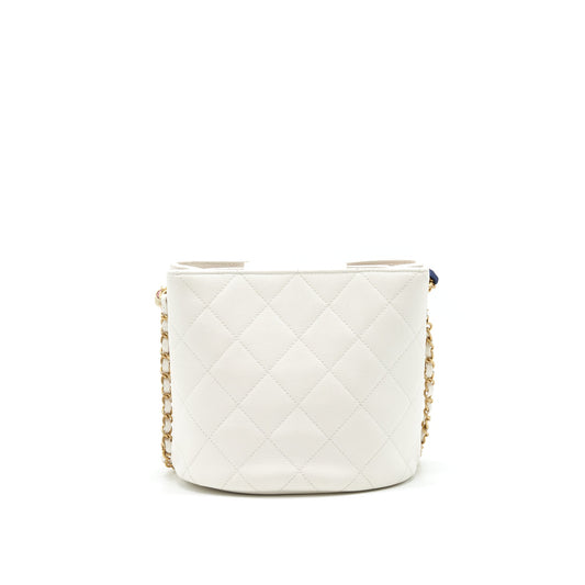 Chanel Button Bucket Crossbody Bag Lambskin White GHW