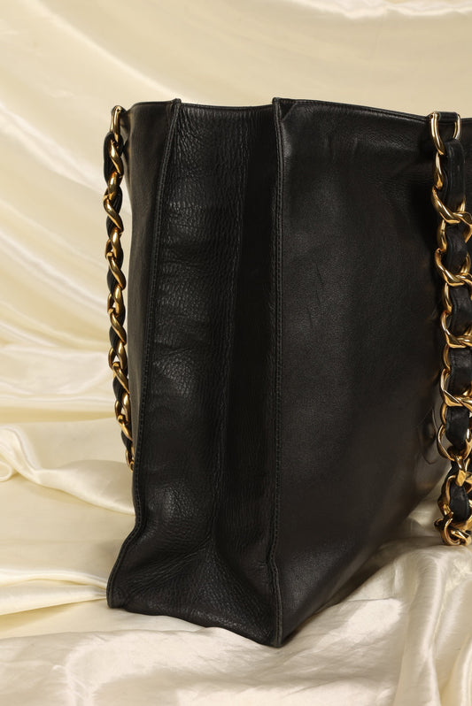 Chanel Cambon Ligne Black Quilted Tote Bag Leather Tote Bag