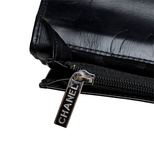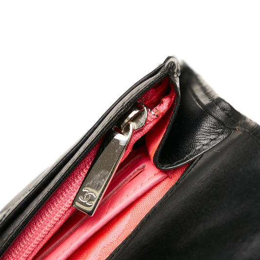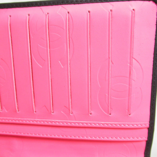 Chanel Cambon Bifold Long Wallet Black Pink Leather