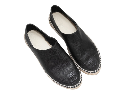 Black Chanel CC Cap-Toe Espadrille Flats Size 37