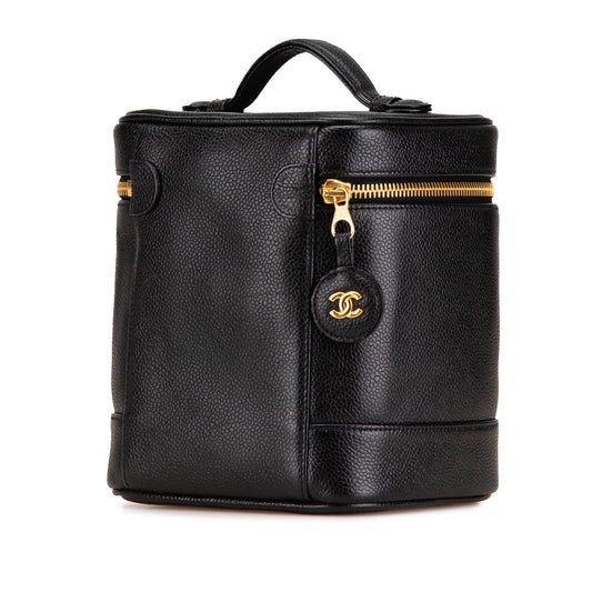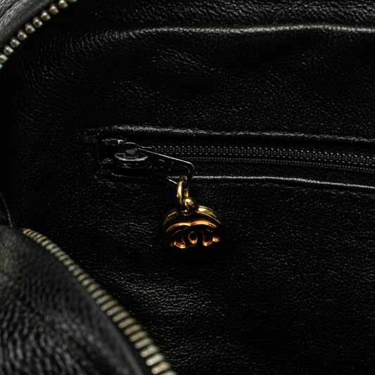 Black Chanel CC Quilted Caviar Round Clutch With Chain Crossbody Bag