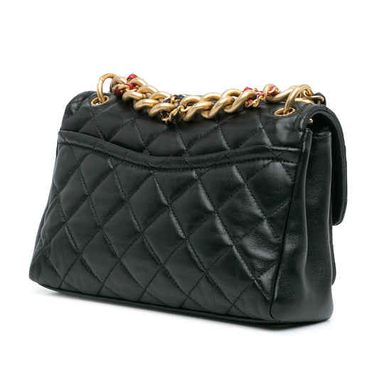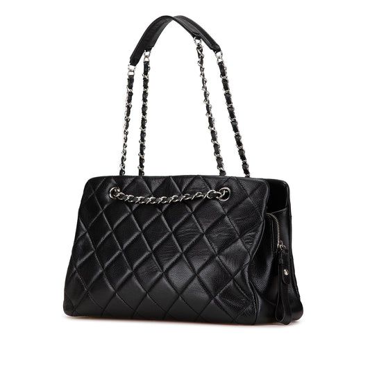 Black Chanel CC Quilted Lambskin Chain Link Flap Satchel
