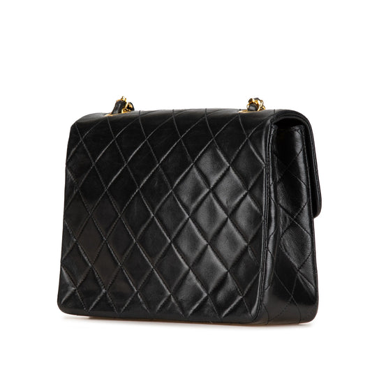 Black Chanel CC Quilted Lambskin Single Flap Shoulder Bag