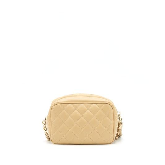 Chanel Camera Bag Small White Quilted Lambskin Gold
