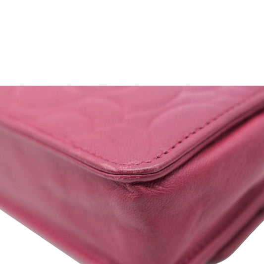 CHANEL Camellia Wallet On Chain Leather Crossbody Bag Fuchsia