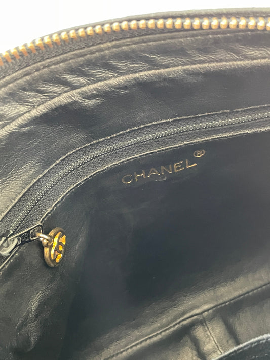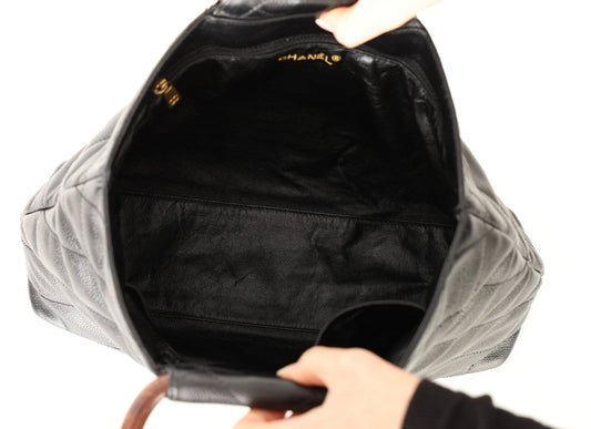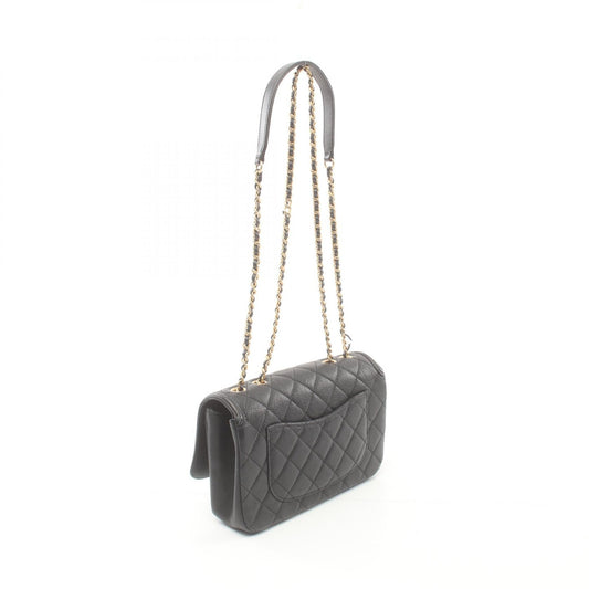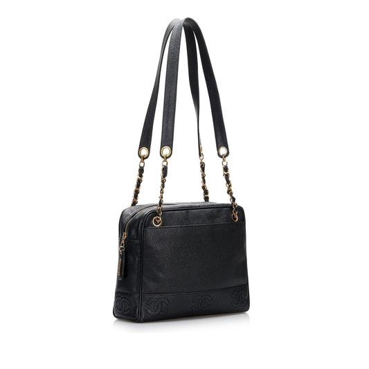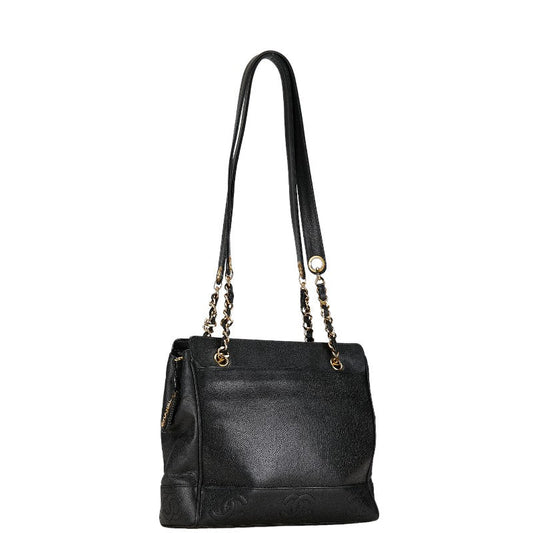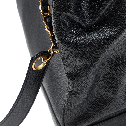Chanel Caviar Chain Shoulder Bag Black Gold