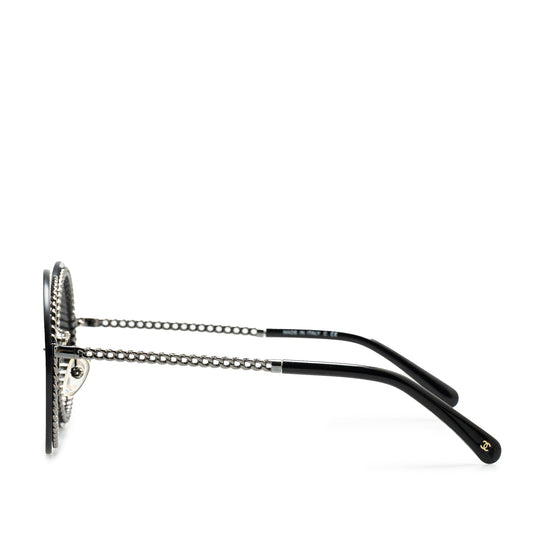 Black Chanel Enamel Faux Pearl Pendant Necklace