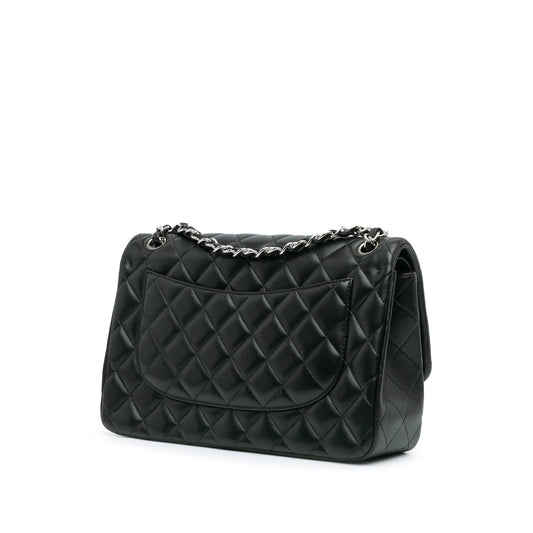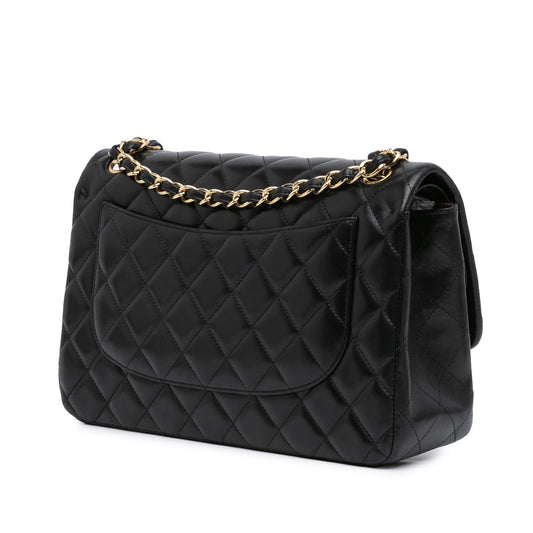 Black Chanel Jumbo Classic Lambskin Double Flap Shoulder Bag