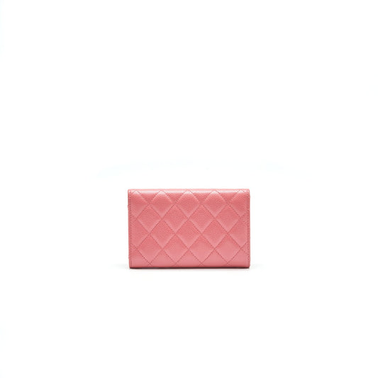 CHANEL CAVIAR MEDIUM FLAP WALLET ROSE PINK WITH GOLD CC LOGO