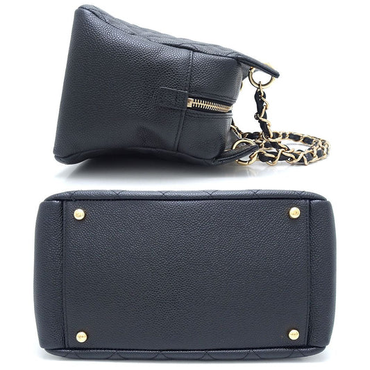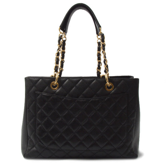 CHANEL Caviar Skin Chain Tote Bag Black Gold Hardware A03578