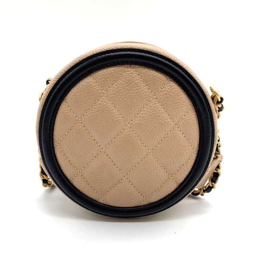 Chanel Caviar Skin CC Filigree Round Chain Crossbody Bag