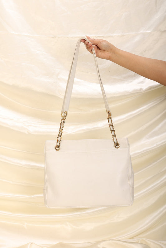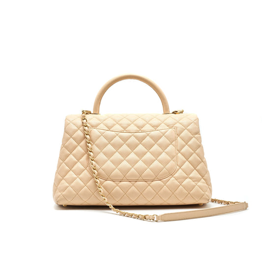 CHANEL CAVIER LARGE COCO HANDLE FLAP BAG BEIGE GHW