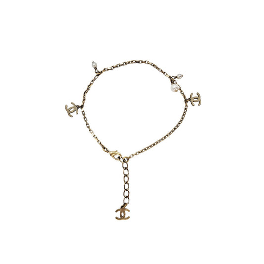 CHANEL CC Faux Pearl Station Bracelet / Anklet