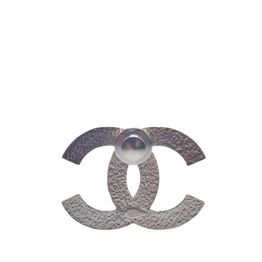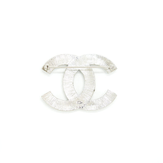 Chanel CC Crystal Silver Tone Pendant Necklace