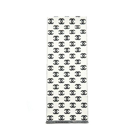 Chanel CC full logo Wool / cashmere double side scarf black/ white