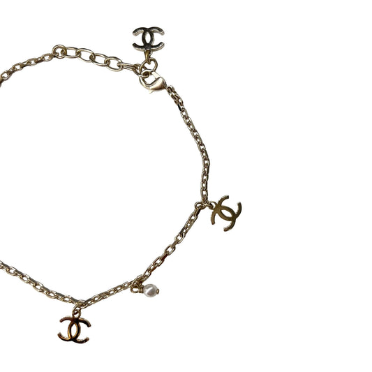 Chanel CC Logo And Pearl Necklace Light Gold Tone