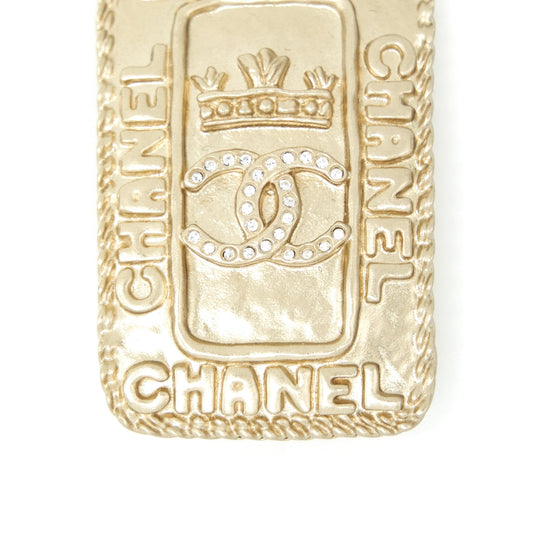 Chanel CC Logo And Crown Metal Plate Brooch Brushed LGHW