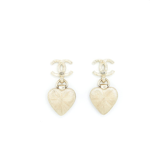 Chanel CC Logo And Heart Earrings Red And Light Gold Tone