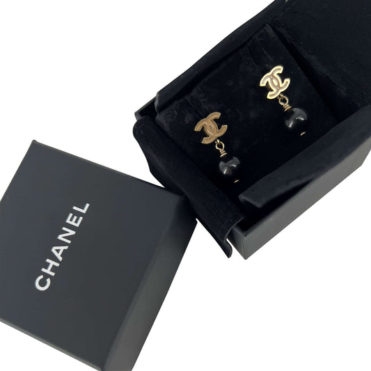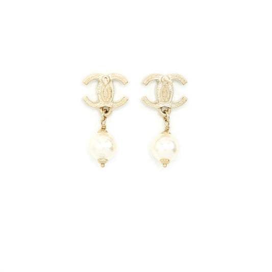 CHANEL CC Logo Gold Tone Pearl Earrings