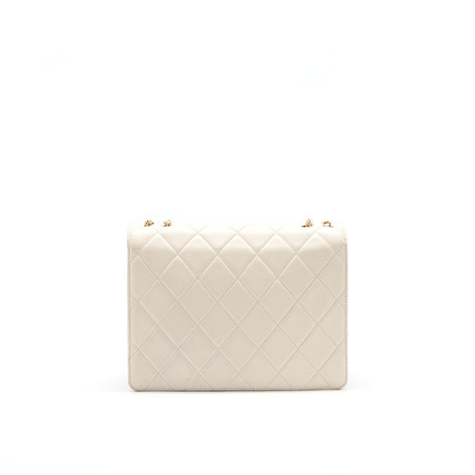 CHANEL CC Logo Flap Bag With Chain Quilted Lambskin Ivory White