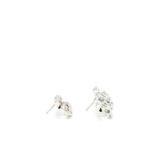Chanel CC Logo Earring With Crystal Sliver Tone