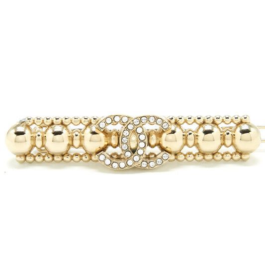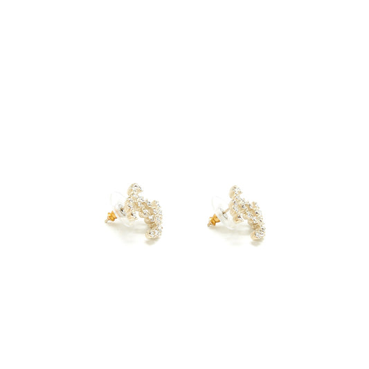 Chanel CC Logo Crystal Earring Light Gold Tone