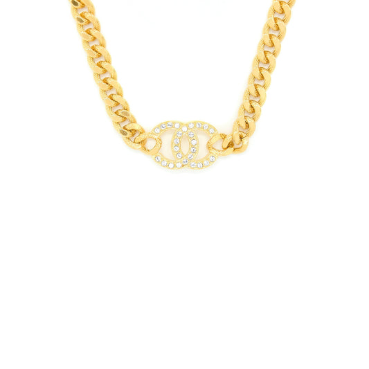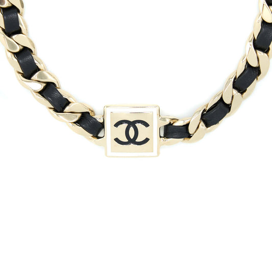 Chanel CC Logo Chain/Leather Choker Light Gold Tone/ Enamel