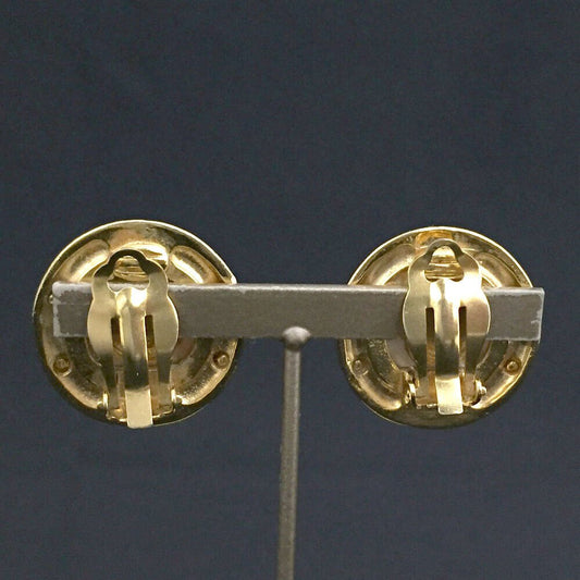 Chanel CC Logo Crystal And Pearl Ear Clips Light Gold Tone