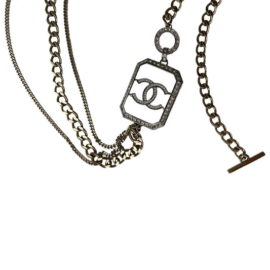 Chanel CC Logo With Crystal Necklace Light Gold Tone