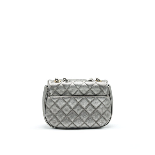 Chanel CC Logo Quilted Calfskin Flap Bag In Metallic Dark Grey