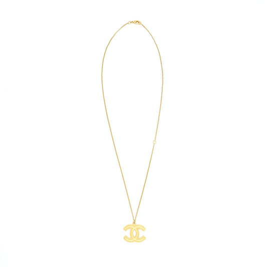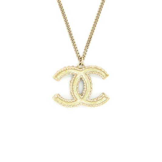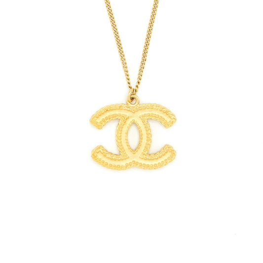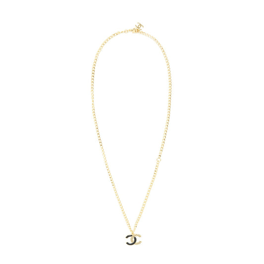 Chanel CC Logo Pendant Necklace Bright Gold Tone