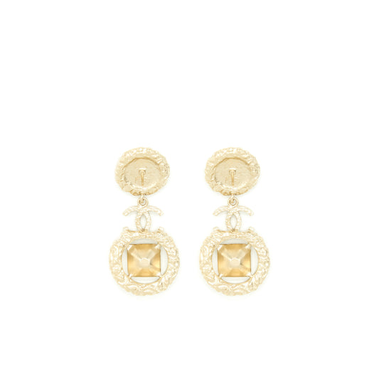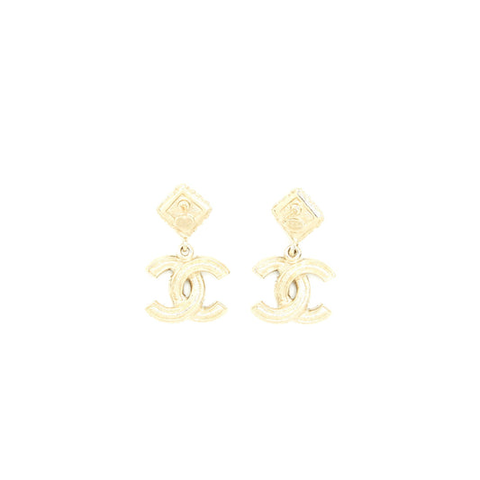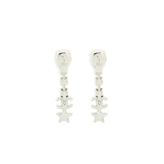 Chanel CC Logo With Crystals Star Drop Earring Light Gold Tone