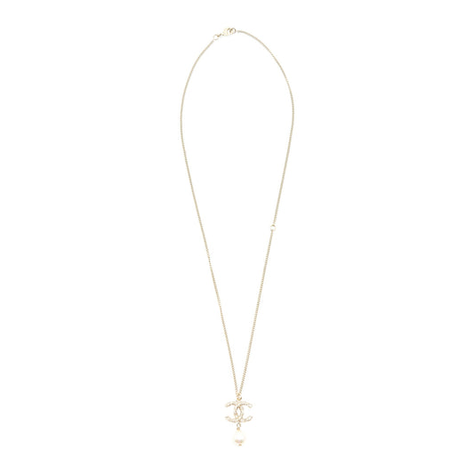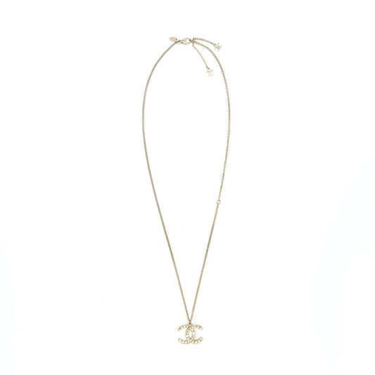 Chanel CC Logo Necklace Light Gold Tone With Pearl Design