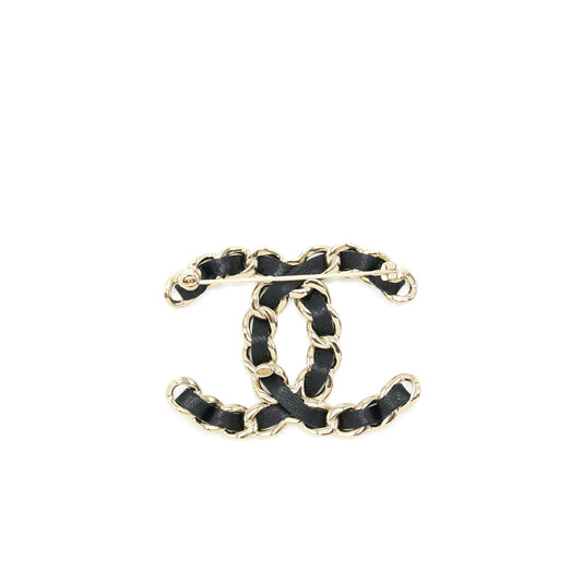 Chanel CC Logo Leather Chain Brooch Light Gold Tone