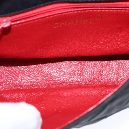 CHANEL Chain Shoulder Bag Clutch Black Quilted Flap Lambskin Purse k05
