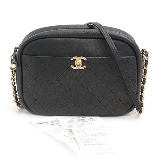 CHANEL Chain Shoulder Bag Leather Black CC 108324