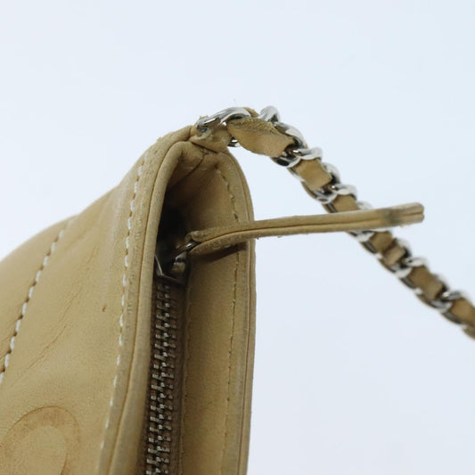CHANEL Chain Shoulder Pouch Leather Beige Silver CC 96004