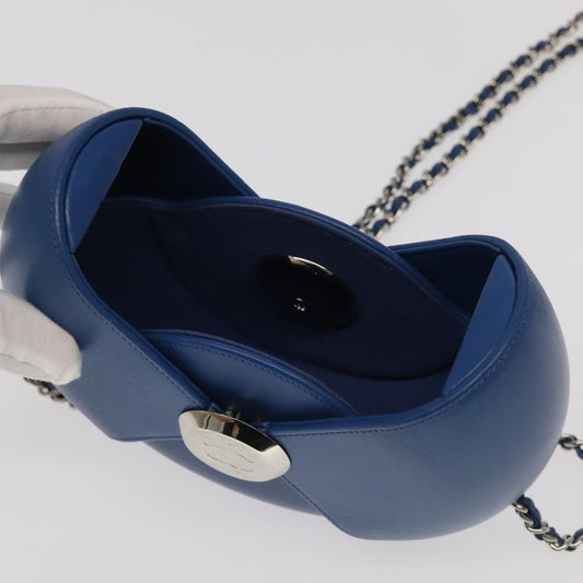 CHANEL Chain Shoulder Bag Lamb Skin Blue CC bs19049A