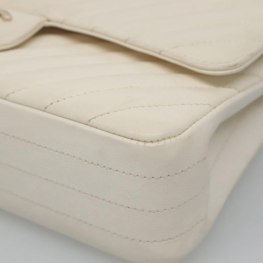 CHANEL Chain Shoulder Bag Lamb Skin White CC yk6254