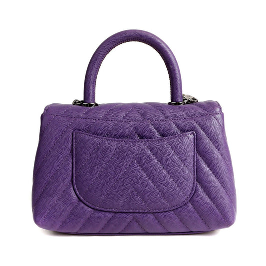Chanel Chevron Caviar Royal Purple Mini Coco Handle Flap Bag w/ Silver Hardware